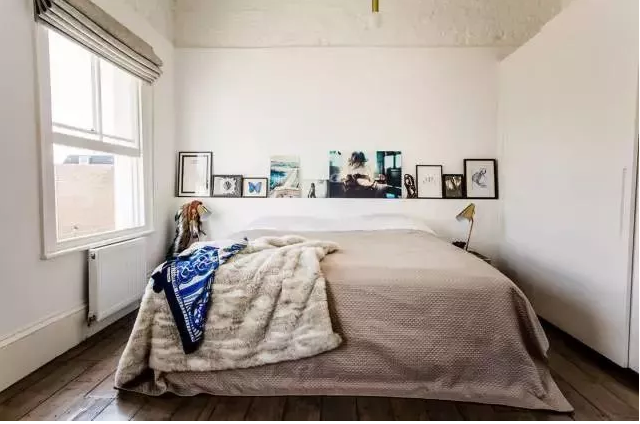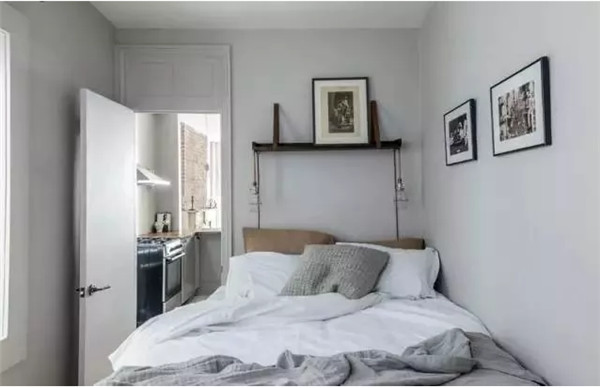 小戶型臥房通常選用小型床,避免挑選床架周邊是有延伸性造型的。此外,可以利用藝術品點綴在床的上方或是床頭處。