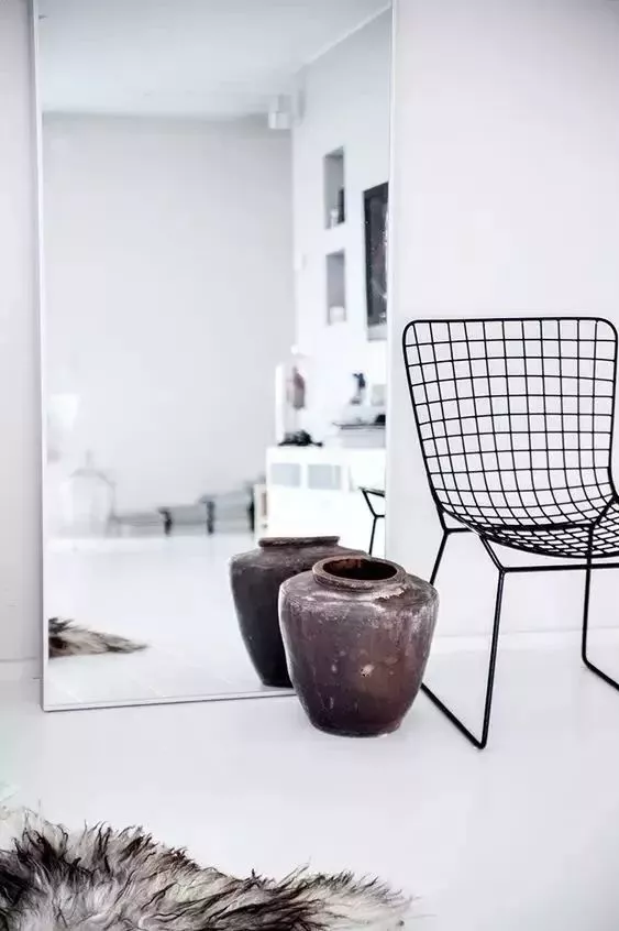 擺放一面大鏡子,是放大空間比較簡單的方法,找一面全身鏡并將其靠在墻上,不需要在墻上穿孔,只要能安穩地靠著墻即可!