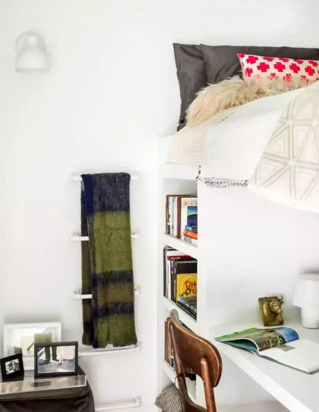 但這個方法并不適合所有的人,因為必須每天爬上爬下,如果不介意這樣的方式的人可以考慮使用高腳床,因為這樣可以改變整體空間的設計。