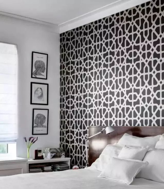 在挑選壁紙時,盡量選擇較小的圖案拼湊成大型圖騰的壁紙。不要忘記壁紙必須與床和空間風格互相搭配,讓新壁紙更有視覺的凝聚力!