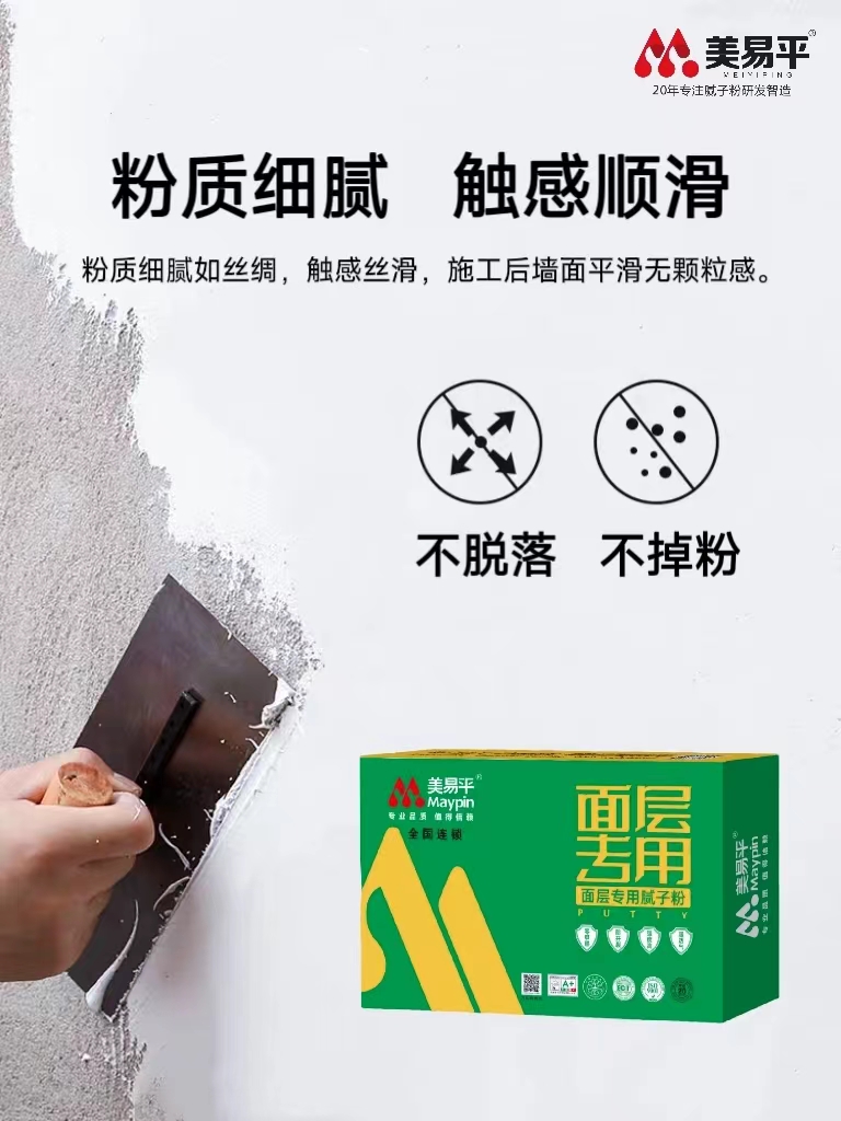 簡介—— 產品特點:質感細膩:美易平面層專用膩子粉的細膩質地使其能夠填補墻面上的細小裂縫和不平整處,確保墻面光滑如鏡。高效施工:該